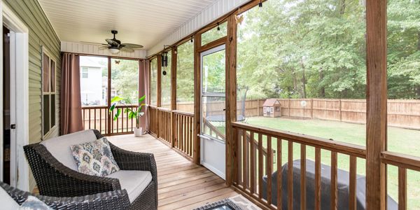 easy with a screened porch, covered porch, and a stamped concrete patio overlooking the wood-fenced backyard. This